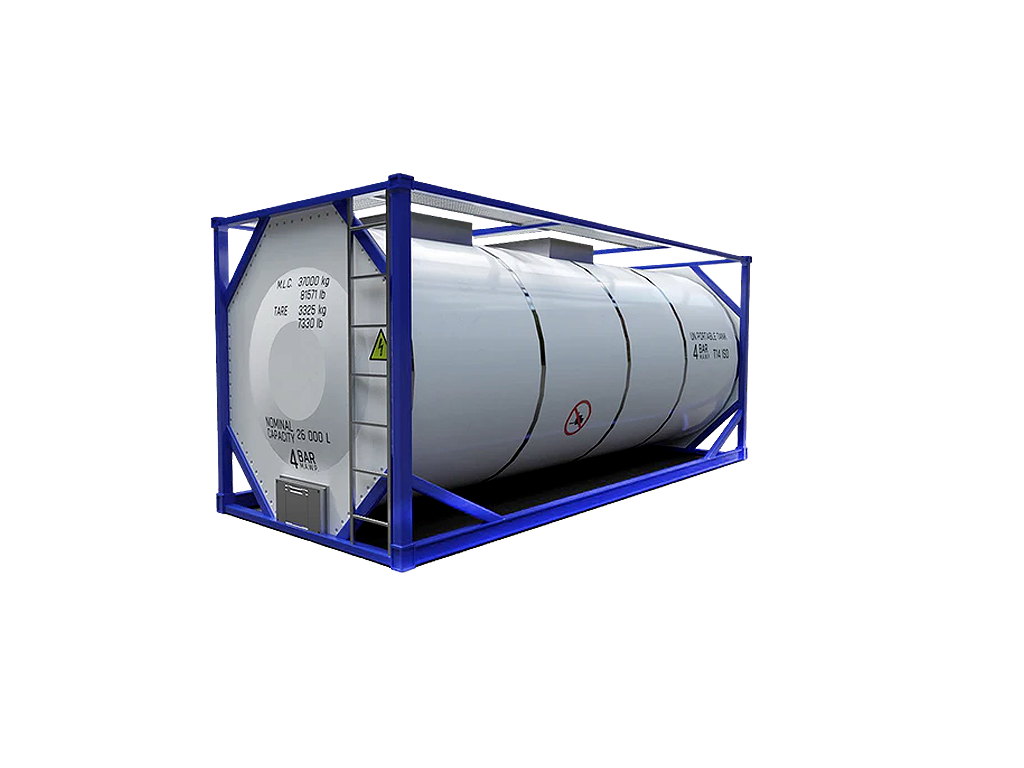 Το 20’ ISO Tank container χρησιμοποιείται για μεταφορά υγρών και χημικών.